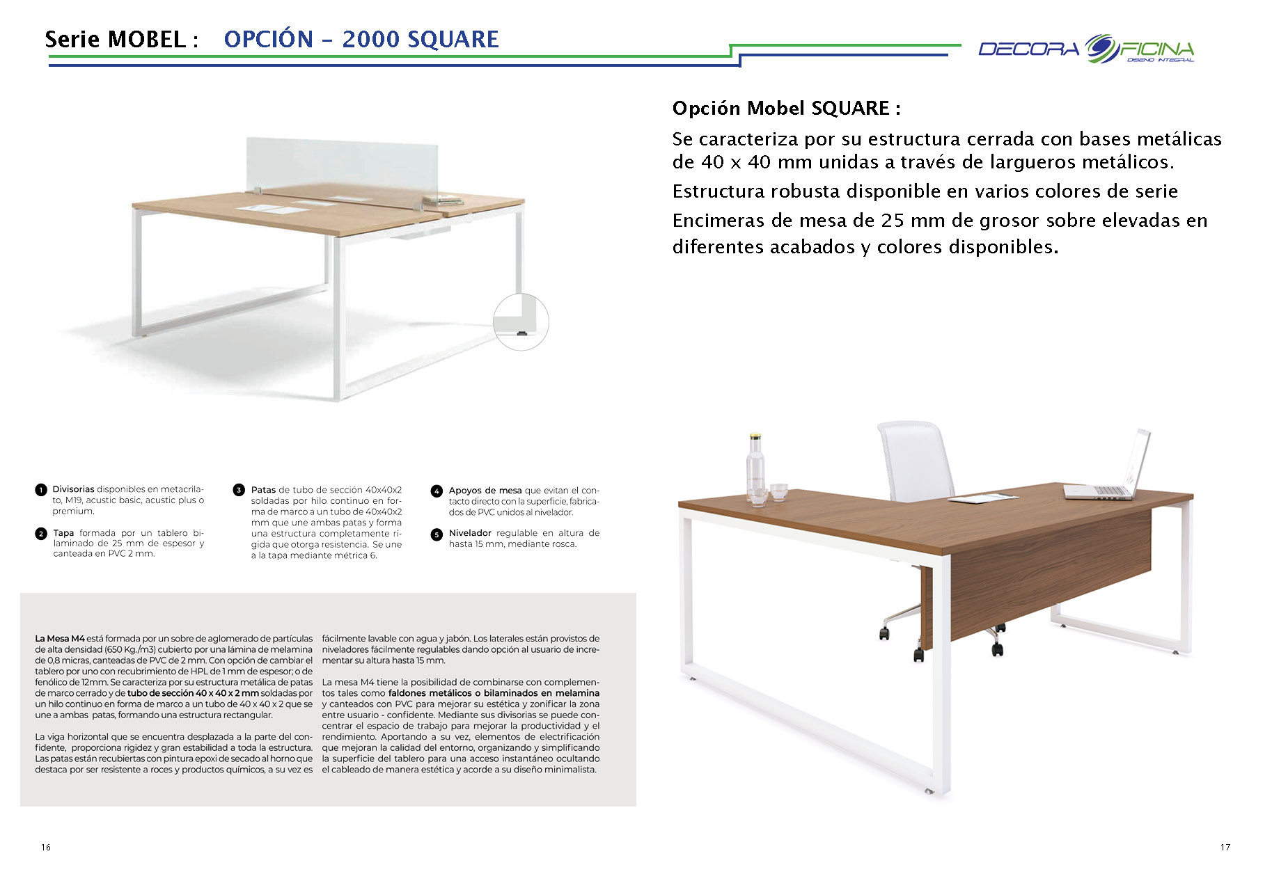 ¿Si está buscando muebles de oficina, mesas de trabajo o despacho, cajoneras, muebles auxiliares, armarios para archivo o separaciones de espacios y mesas de trabajo ? Tenemos el mueble ideal para usted con todo tipo de formatos y medidas estandar o incluso a medida bajo consulta. Material con encimeras bilaminadas de primera calidad con un diseño actual y adecuado pensado únicamente para uso intensivo en oficinas o puestos de trabajo con una alta durabilidad y controles de calidad nacionales. Estructuras opcionalmente en diversos colores