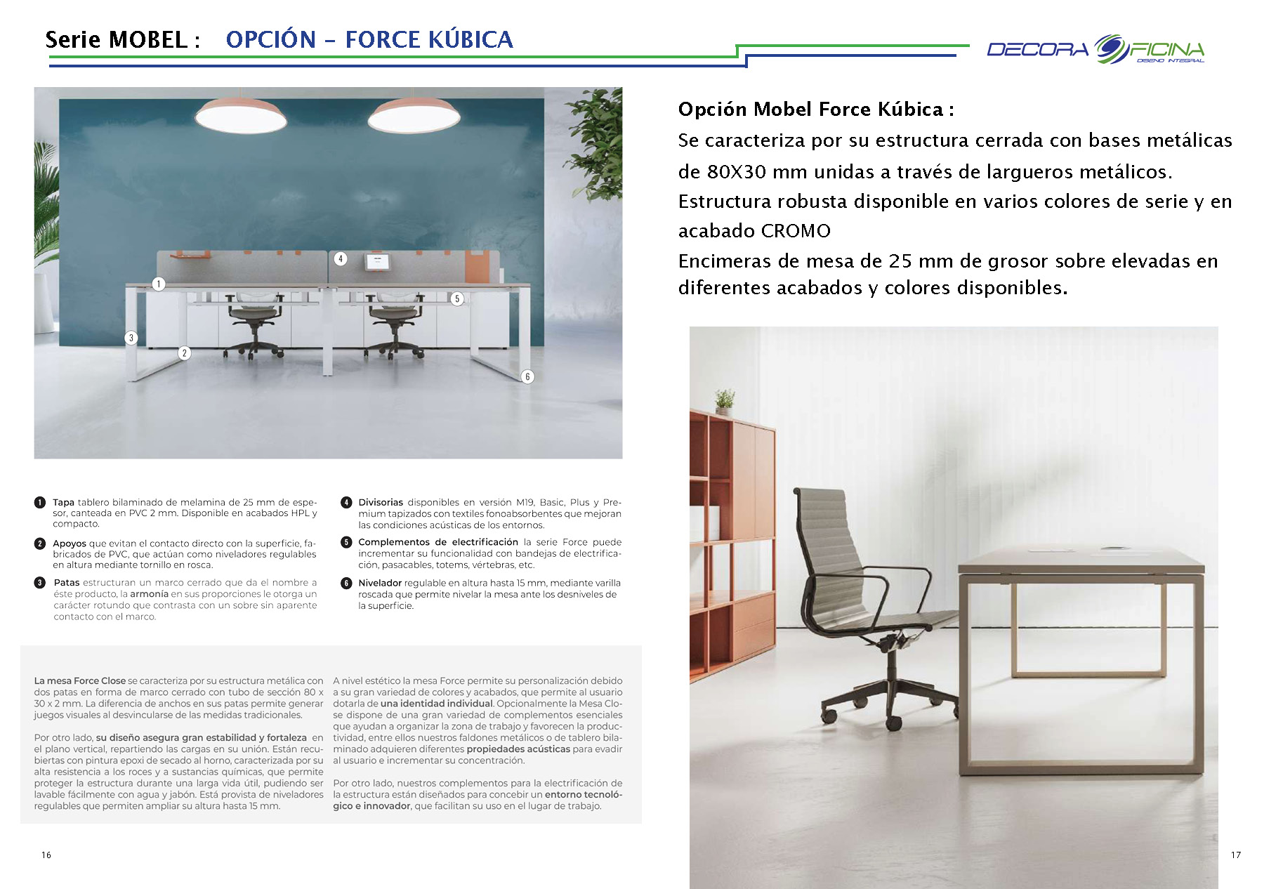 ¿Si está buscando muebles de oficina, mesas de trabajo o despacho, cajoneras, muebles auxiliares, armarios para archivo o separaciones de espacios y mesas de trabajo ? Tenemos el mueble ideal para usted con todo tipo de formatos y medidas estandar o incluso a medida bajo consulta. Material con encimeras bilaminadas de primera calidad con un diseño actual y adecuado pensado únicamente para uso intensivo en oficinas o puestos de trabajo con una alta durabilidad y controles de calidad nacionales. Estructuras opcionalmente en diversos colores