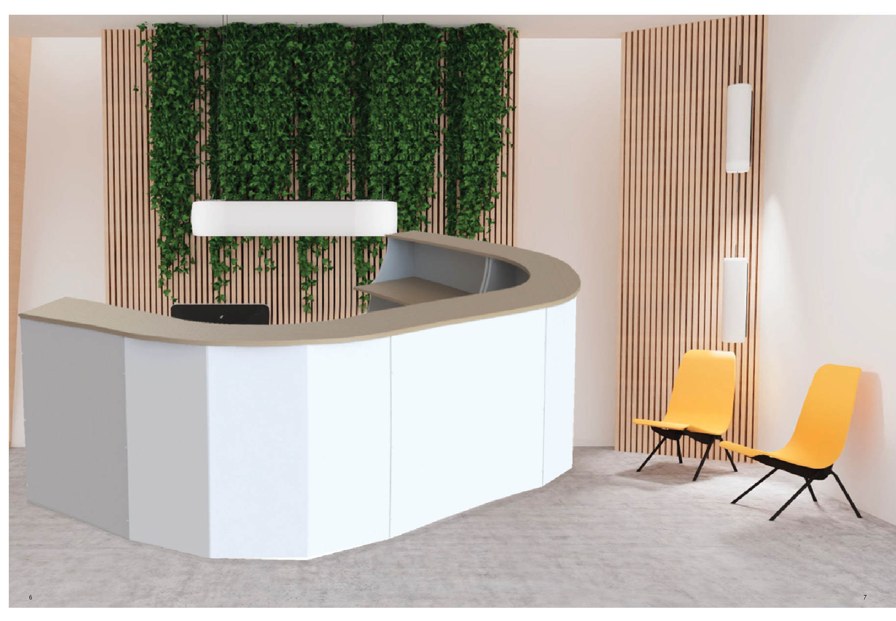 Esta recepción está pensada para crear y diseñar una recepción moderna y elegante con espacios dinámicos y útiles para cualquier tipo de actividad , con una gran calidad de materiales y acabados, ideales para espacios en oficinas, locales, naves etc..