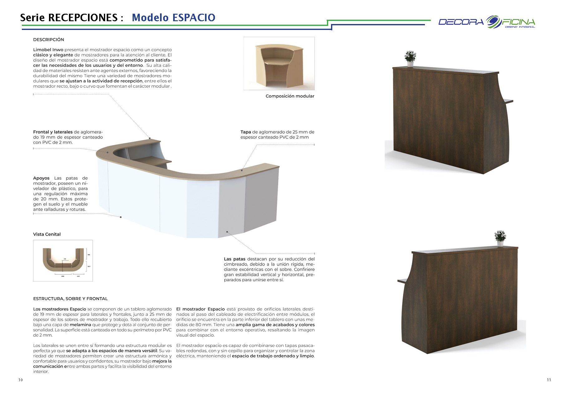 • Estética y Funcionalidad: Disponible en una variedad de acabados y colores. El diseño de su recepción tendrá un añadido elegante para cualquier entorno dentro de la oficina o local.