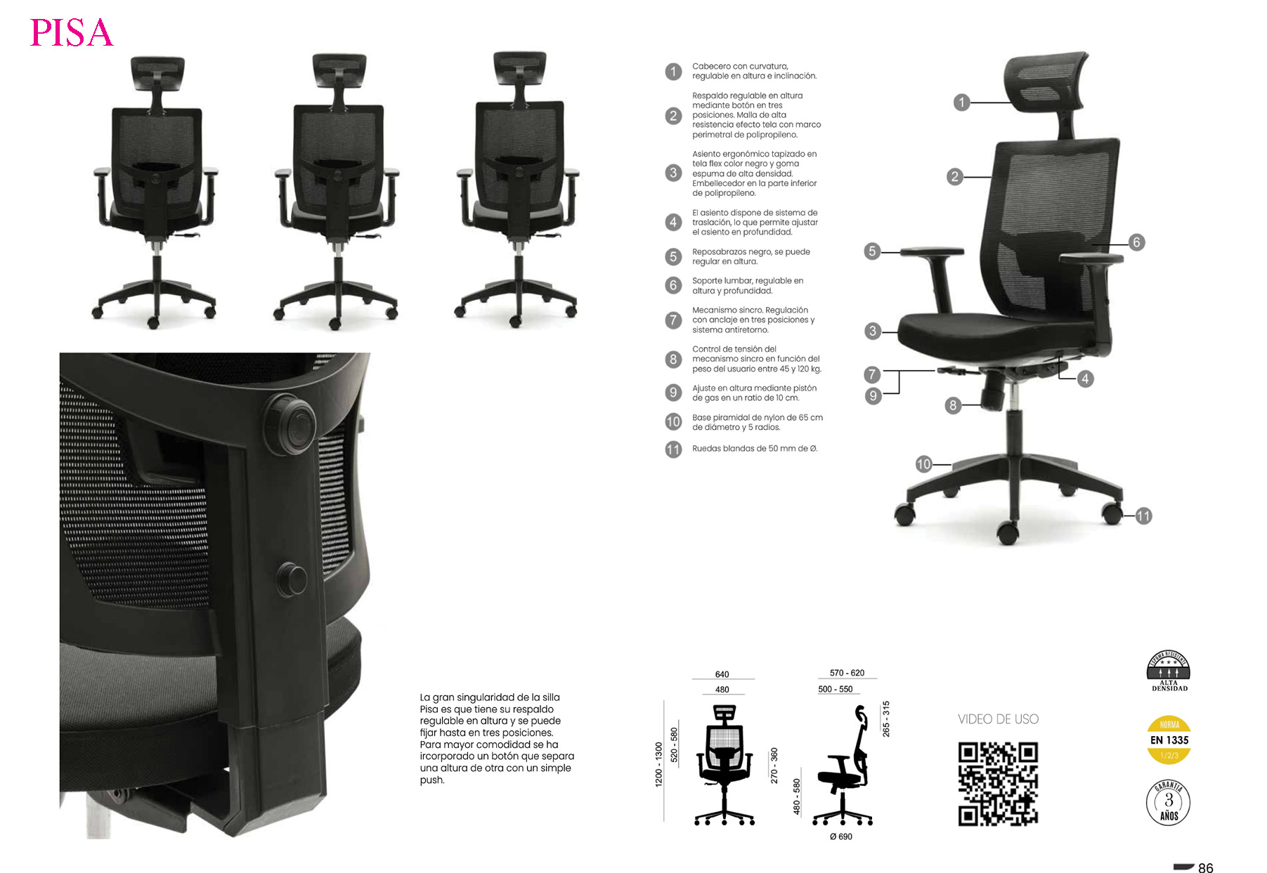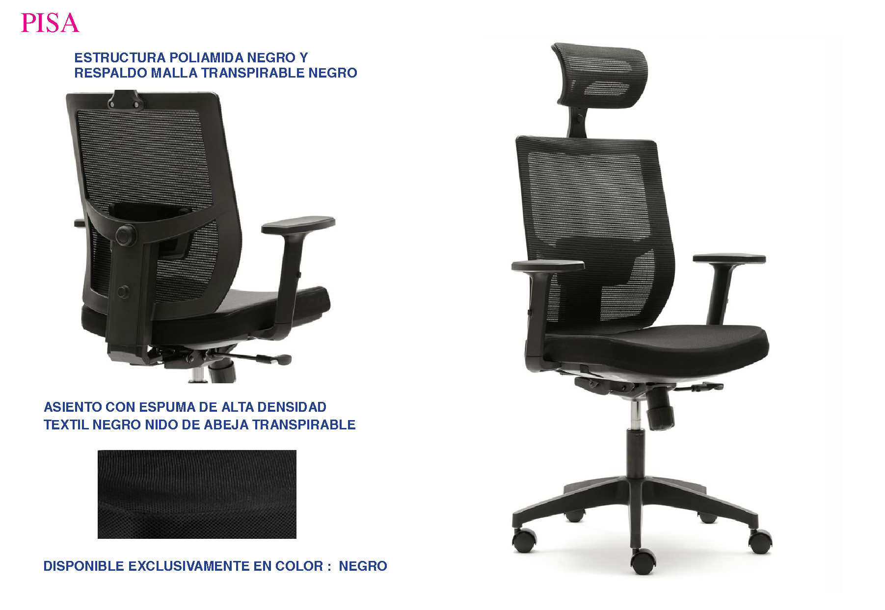• Respaldo : Transpirable ( Malla de alta durabilidad )