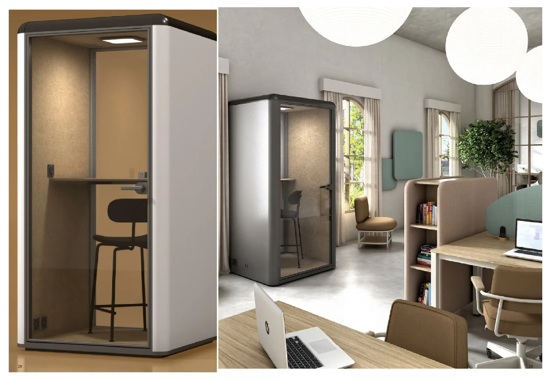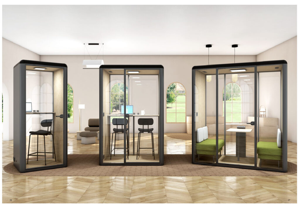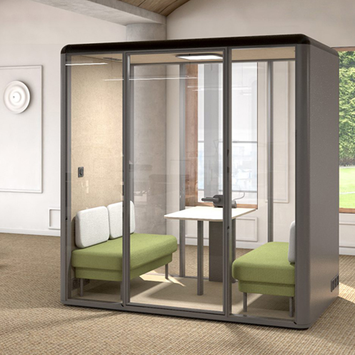 Nuestras soluciones de cabinas acústicas pasan por ofrecerle diferentes opciones para que puedan resolver sus problemas de ruido en la oficina, en la sala de espera o en la recepción ya que están fabricados con texturas actuales de PET en diferentes acabados a elegir y listos para instalar cualquiera de las zonas de su trabajo sea tanto en oficinas o en el hogar. Nuestras soluciones de cabinas le permiten también crear ambientes y espacios decorativos haciendo de ellos un lugar especial y único con unos acabados perfectos para cada tipo sala que pretendamos decorar. Trabajamos con las últimas técnicas de materiales acústicos PET para crear todo tipo de creaciones o ideas que puedan surgir desde el propio interesado. Creamos un ambiente decorado insonorizado perfectamente acorde a una actual decoración que le permitirá disfrutar de sus zonas ruidosas reduciendo notablemente el sonido alto que no para de rebotar entre los paneles absorbiendo y reduciendo la frecuencia hasta eliminarla sin permitir que ésta se mantenga durante mas tiempo si no tuviera algún elemento absorbente como es el PET para que provoque esta reducción notable.